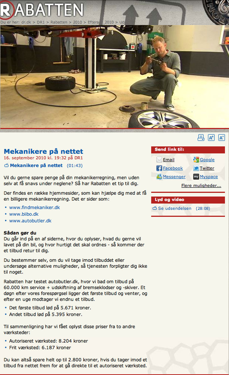 Her omtaler værten blandt andre Biibo.dk, som en god service, hvor forbrugere kan indhente tilbud på bil reparationer, og spare penge på værkstedsregningen.